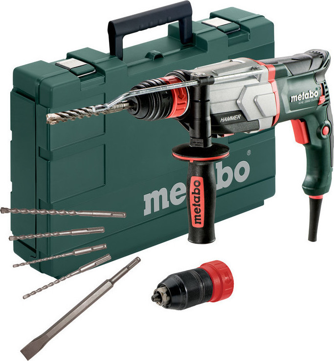 ■ KHE 2860 Ηλεκτρικό Σκαπτικό Περιστροφικό Πιστολέτο 880 Watt ■ Τσοκ SDS-plus ■ Τσοκ ταχείας πρόσδεσης για εργαλεία με κυλινδρικό στέλεχος ■ Λαστιχένια πρόσθετη λαβή ■ Οδηγός βάθους διάτρησης ■ Set Τρυπάνια-καλέμι ■ Πλαστική Βαλίτσα ■ Καρέκλα παραλίας Metabo